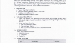 Dalam rangka memenuhi kebutuhan formasi Pegawai Negeri Sipil yang sesuai dengan kompetensi dan keilmuan yang diperlukan oleh Pemerintah Kota Depok maka Pemerintah Kota Depok mengadakan seleksi perpindahan wilayah kerja yang dilaksanakan tanggal 26 – 27 Juli 2017, dengan jadwal sebagai Read more…