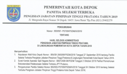 Hasil Seleksi Administrasi Pengisian Jabatan Pimpinan Tinggi Pratama di Lingkungan Pemerintah Kota Depok Tahun 2019