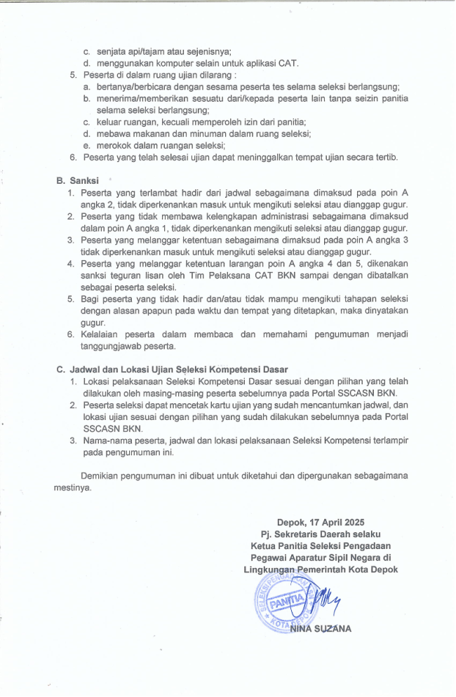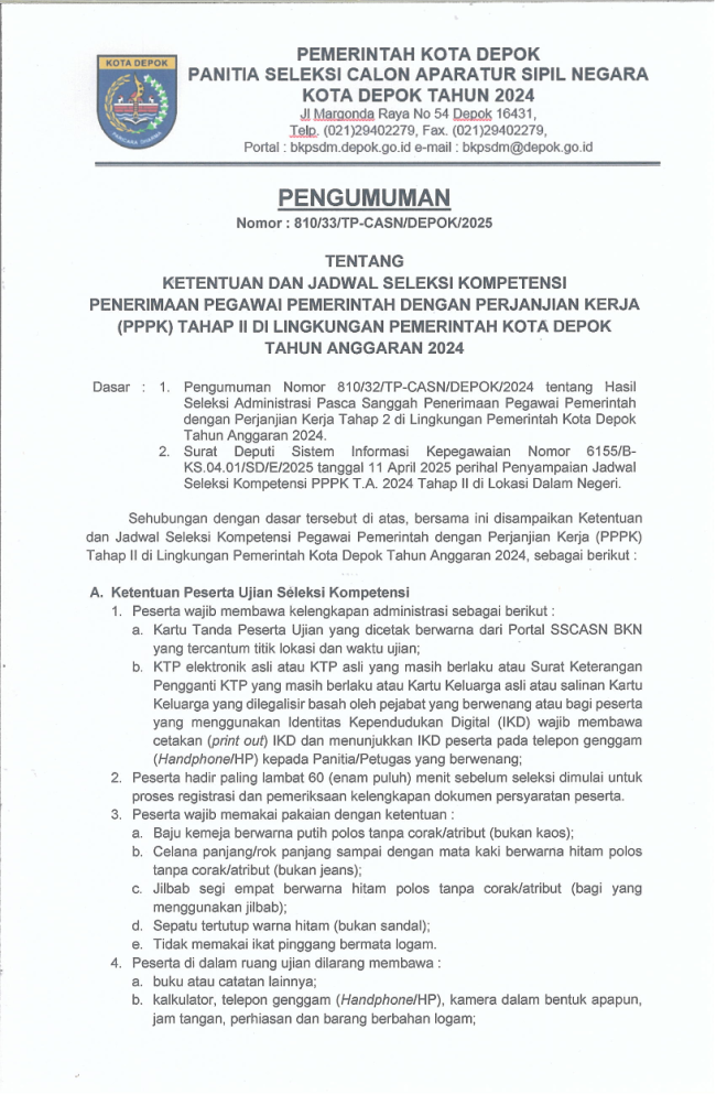 Pengumuman Ketentuan dan Jadwal Seleksi Kompetensi PPPK Tahap II Kota Depok Tahun 2024