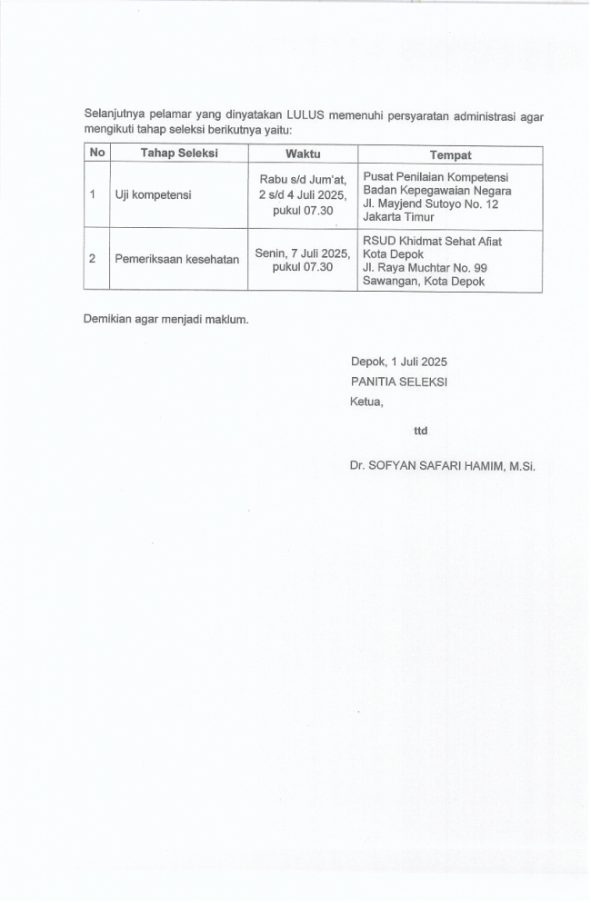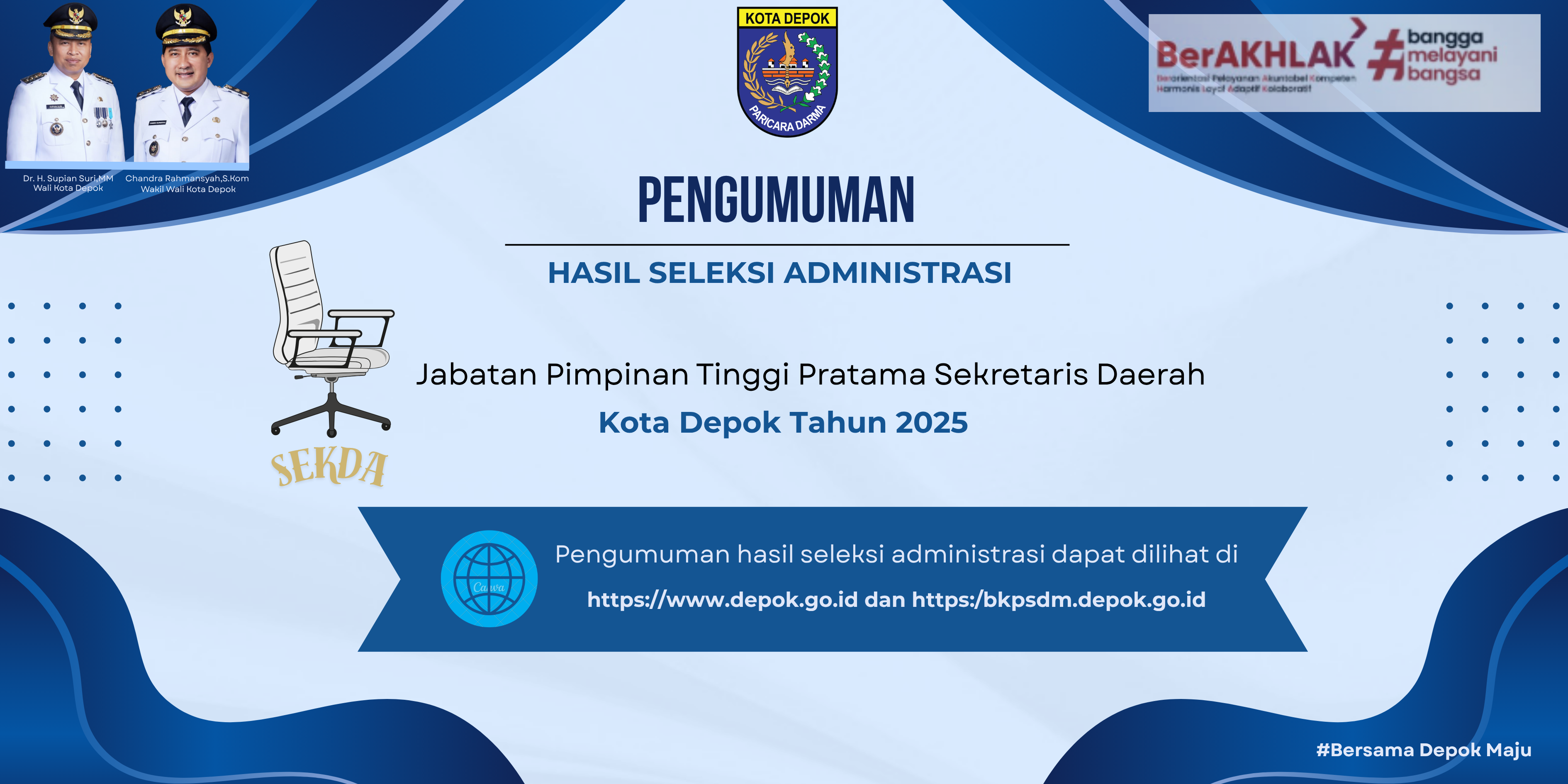 Pengumuman Hasil Seleksi Administrasi Seleksi Terbuka Pengisian JPT Pratama Sekretaris Daerah Kota Depok Tahun 2025