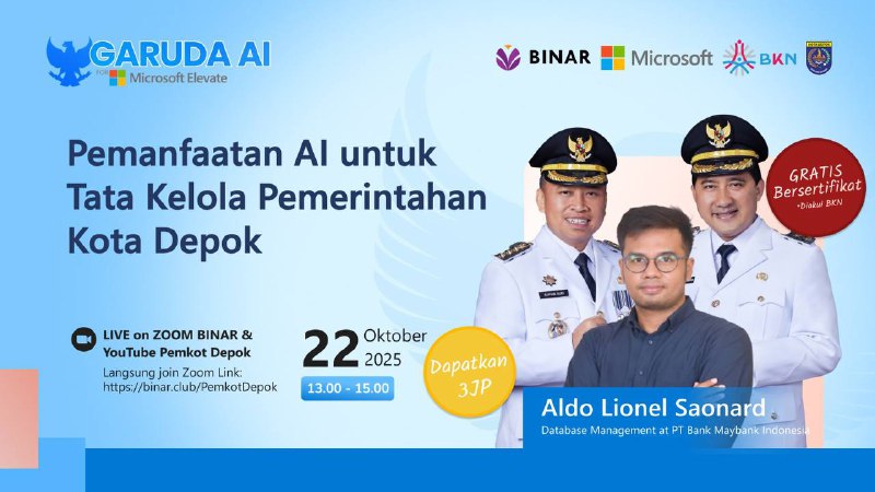 Melalui webinar ini, diharapkan para ASN dapat memahami potensi penerapan AI dalam pelayanan publik, pengambilan keputusan berbasis data, serta peningkatan efisiensi kerja. Langkah ini sejalan dengan visi Smart City Depok menuju pemerintahan digital yang modern, transparan, dan adaptif terhadap perkembangan teknologi.