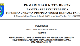 Hasil Seleksi Kompetensi Dasar CPNS dan Seleksi Kompetensi PPPK Non Guru Tahun 2021 Tilok Kota Depok