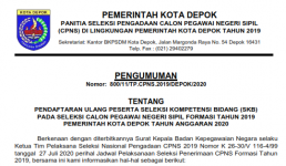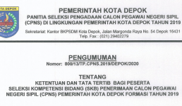 Pemerintah Kota (Pemkot) Depok masih menunggu hasil seleksi Calon Pegawai Negeri Sipil (CPNS) Tahun 2019 di Kota Depok. Badan Kepegawaian Negara (BKN) berencana menyampaikan hasilnya pada 26 Oktober 2020. “Berdasarkan rapat dengan BKN kemarin, diinfokan tanggal 26 Oktober, kita Read more…