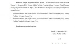 Lampiran 1 : Hasil Integrasi SKD-SKB CPNS Kota Depok ringkas DOWNLOAD DISINI Lampiran 2 : Hasil Integrasi SKD-SKB CPNS Kota Depok rinci DOWNLOAD DISINI Lampiran 3 : Pengumuman Peserta Seleksi Calon Pegawai Negeri Sipil Pemerintah Kota Depok Tahun 2018 Read more…